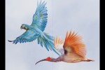 FLOCK OF BIRDS WALL PAINTING MACAW AND IBIS