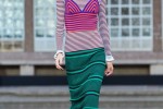 Skirts in the Women’s collection meet running t-shirts and ruffled crepe dresses appear with floral jacquard coats. The Men’s collection associates 50’s baseball trousers with graphic tees. Prints provided by Ryuichi Sakamoto himself are worn alongside striped tops and cashmere patterns.