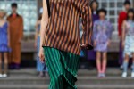 Kenzo once again showed its women’s and men’s collections together in the courtyard of Lycee Camille See in the 15th arrondissement of Paris. Kenzo Creative Directors Carol Lim and Humberto Leon wanted to capture the personal flair of Japanese musician Ryuichi Sakamoto and the ability of model and actress Sayoko Yamaguchi to mix patterns, prints, silhouettes and colors.