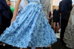 Clothes that were loose and flowing, with billowing silk georgette poet’s blouses half-tucked into soft, fil coupe skirts, or linen duster coats worn over loose, lightweight trousers. Long straps of fabric and ruffles added more texture. Even when there were straight lines – tailored jackets and neat little sky-blue dresses – they were decorated with rough-silk applique flowers. This loose, unstructured sexiness was in line with fashion’s current vision of the ideal woman right now: it is not enough simply to be glamorous; one must also appear to be carefree, quirky and intelligent.