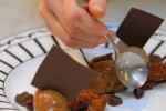 “The idea for this dessert “Initiation into taste, texture and temperature” is precisely a play of flavors, a play of sensations and temperatures. It’s a dessert that is made up of three large quenelles of rich chocolate cream, chocolate mousse, and an incredibly chocolately Chuao sorbet, with a chocolate sauce around it,” explained Pierre Hermé, the French pastry chef most famous for his macarons, many of which have unusual flavor combinations.