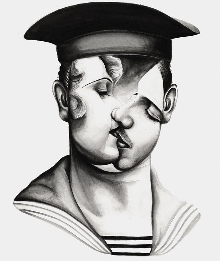 Surreal portraits with floral patterns, masculine motifs and romantic impressions of long-gone times.