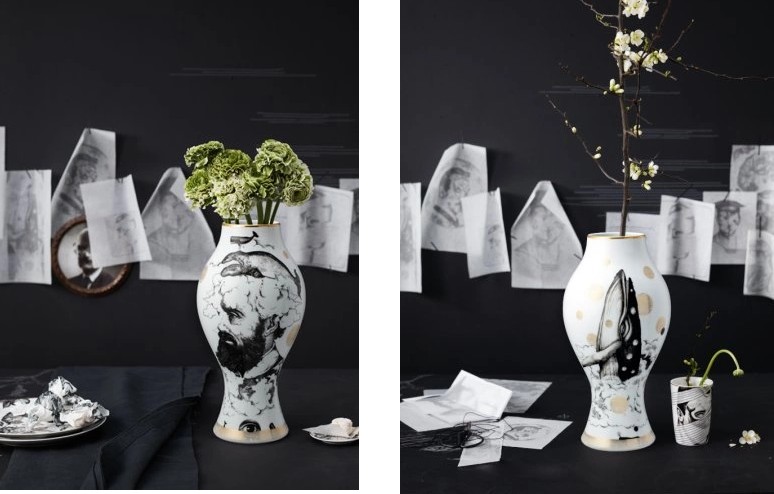 Inspired by the rough beauty of the seas and the men that brave the waters, Italian tattoo artist created impressive motifs for Rosenthal using watercolour and ink. His unique light stroke and his anachronistic figures create a special aesthetic that fuses dream and reality, figurative and floral, graphic and pictorial. The gift collection includes four motifs on plates, coffee-to-go cups, cups and bowls as well as a limited edition vase with an additional motif. The espresso and tea cups have special value due to their gold coating.
