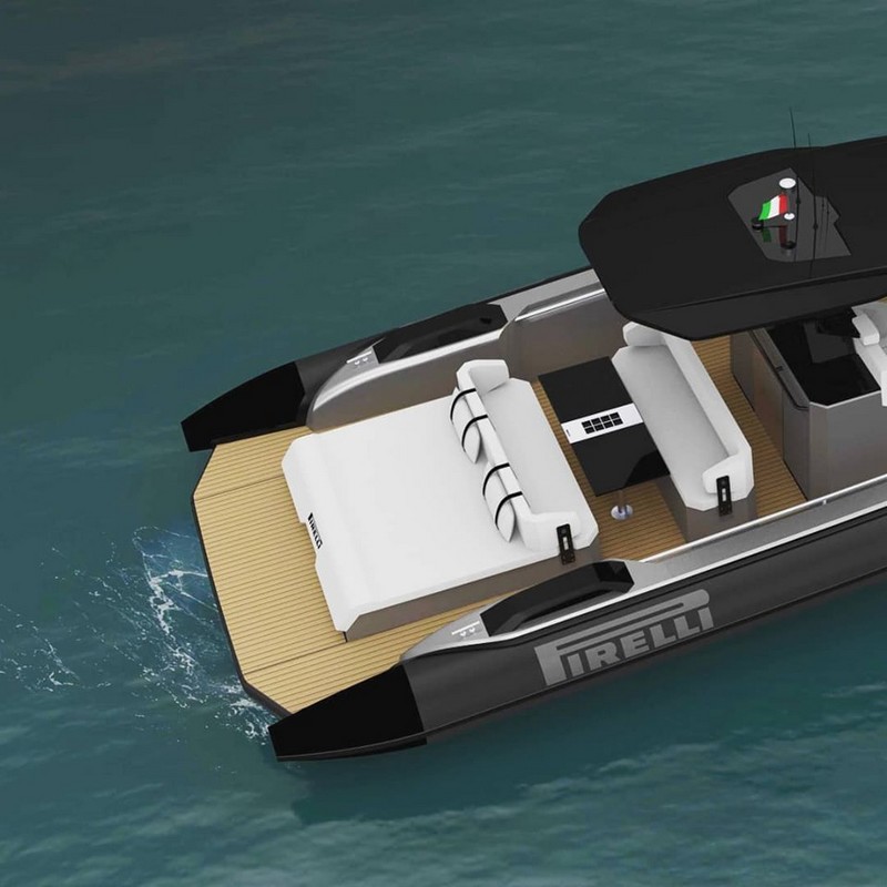 Pirelli 1250 is a walk-around designed jointly with Swedish firm Mannerfelt Design Team, featuring forward and aft sundecks, a day area with an outdoor table, and a lower deck with a convertible dinette and a head. The new PIRELLI 1250 is the first model in a new product line created to satisfy the most demanding customers. The versatile boat is suited for use both on a daily basis and as a chase boat, or alternatively for mid-range cruising.
