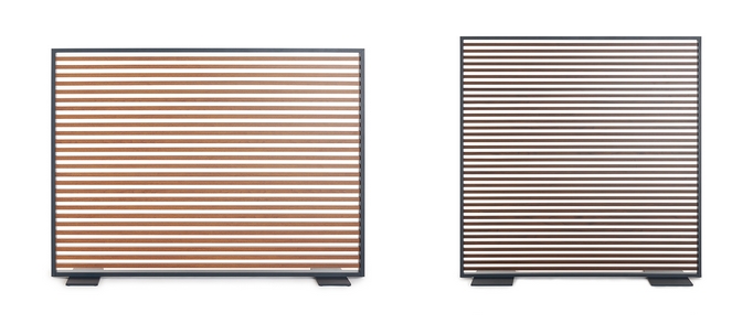 The PARTITION WALL by José A. Gandía-Blasco Canales evoke the classic Mediterranean shutters and stand out for the use of finishes such as faux wood aluminium, that prints a patina of warmth on the strength and durability of exposed aluminium and connects with the Mediterranean essence of the brand.