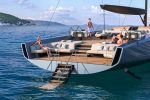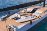 One of the most appealing design elements is the removable deck furniture, which harks back to the heyday of big yacht racing. Every seat, sunbed, lounger and table can be removed and kept ashore to ready the Wallywind110 for racing. Of course, the design is quintessential Wally, right down to the famous ‘terrace on the sea’ – a deep, sheltered aft deck.