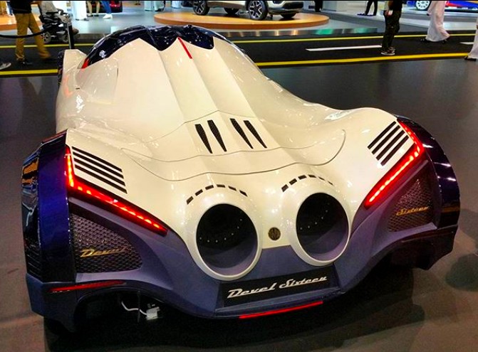Inspired by a jet fighter, the 5007 HP Devel Sixteen is a hyper car born in Dubai. The all-new production model of Devel 16, on display at Dubai Motor Show, has a super lightweight, high-strength Carbon fiber body and frame. Extensive research and development into the aerodynamics of the car have lead Dubai-based Devel Motors to try to achieve unprecedented power in a production hyper car.