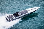 The boat offers an impressive 140 mph top speed through the use of a highly optimized composite structure consisting of carbon-fiber, Kevlar and E-glass. The price of this one-of-a-kind boat from the Cigarette Racing Team is available upon request.