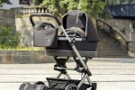 Depending on whether the child prefers to face the direction of movement or prefers to look at their parents, the seat unit can be turned 180° on the frame with one click. The noiselessly adjustable top is protects effectively on hot days and in rainy conditions thanks to a climate zone in the rear and a fold-out sun visor. For the first few months, as an alternative to the seat unit, an infant carrier can be mounted on the frame with a single click.