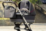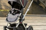 The Mercedes-Benz baby carriage Avantgarde is characterised by a very low net weight resulting from the combination of an aluminium frame of just 8.9 kg with a stylish 4.1 kg GTX seat unit. Thanks to the highly manoeuvrable carrier with Solight Ecco air-chamber tyres, the baby carriage can be moved effortlessly on any surface. Solight Ecco is also a material which is very light thanks to its low density and, as it contains no plasticizers or PAHs, it is highly environmentally friendly. The iconic feature on the Mercedes-Benz baby carriage Avantgarde is the eye- catching rim in the same sporty black-silver-coloured 5-twin-spoke AMG design which is also available on the new C-Class. The parking brake, telescopic handlebar and a stowage compartment are further practical features of this high-quality design.