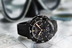 The watch has been designed with all the necessary features that allow owners to get the information they need, when they need it, for a safe dive. The aluminum, unidirectional, turning bezel, turns in just one direction: anti-clockwise. With this “fail-safe” feature the number of elapsed minutes can never be accidentally decreased, only increased. In addition, the 60 minutes markers on the black bezel are luminous, as are the dial indexes, which perfectly contrast against the matt black dial. The watch’s hands are luminous for maximum readability in low visibility conditions, and the minute’s hand is oversized to