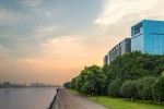 Situated along the Qiantang River, legendary for the world’s biggest and most spectacular tidal bore, The Azure Qiantang is designed by world-renowned architect Mr. Pierre-Yves Rochon. The new luxury hotel uses a blue glass colored structure which showcases design elements that reference the surging waves of the Qiantang River, merged harmoniously with the colors of the sky.