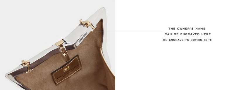 Discover the world’s most prestigious gatherings & exhibitions“Our specialist craftsman spent many months perfecting the techniques that are used to replicate the crisp packet that inspired this iconic clutch. Eight moulds are used to create this piece and its irregular shape means that our craftsmen carry out most of the techniques by hand,” commented the English fashion accessories designer who founded an eponymous company. The recipient’s name will be engraved in uppercase (up to 15 characters, excluding spaces) in a choice of two fonts; Times New Roman (10pt) or Engravers Gothic.