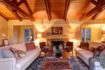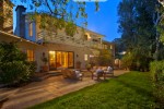 Island—a commanding view that stretches from Beverly Hills to the Pacific Ocean. The Monterrey Colonial main house features six bedrooms and five bathrooms, with multiple fireplaces in the extensive living areas, expansive hardwood floors and vaulted ceilings. French doors open onto the handsomely landscaped grounds, which offer acres of privacy.