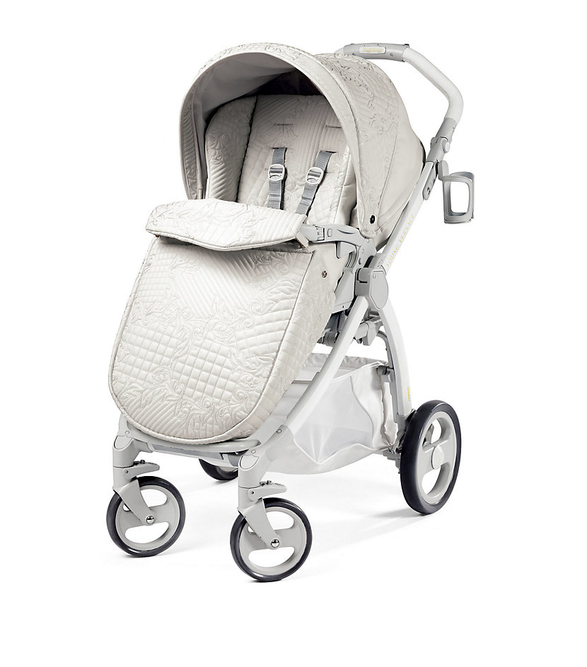 A bold rock ’n’ roll style in black neoprene and patent, or a more delicate, romantic style in white faux leather? Unmistakably Versace, The Book Plus from Young Versace is a practical and handy system, perfect for the growth of a child from 0 to 3 years. The Modular System is made up of a super-convenient modular structure that includes a stroller, bassinet and spacious, matching travel bag.