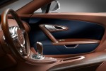 The front part is made of hand-polished aluminium and finished with a clear coating. Bugatti is the only manufacturer to use clear-coated aluminium on a production vehicle. For the first time, this material is used for the entire front and side panels including the bonnet, the mirror bases and housings, the exterior door handles and the corners of the bumpers, the wings, the doors and the regions just behind them, the so-called “medallions” (in French). The door sill is bearing the portrait and signature of Ettore Bugatti.