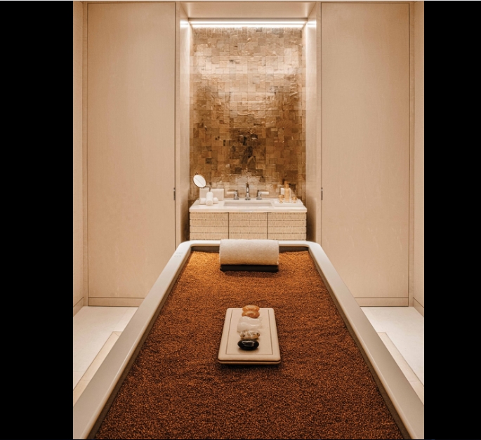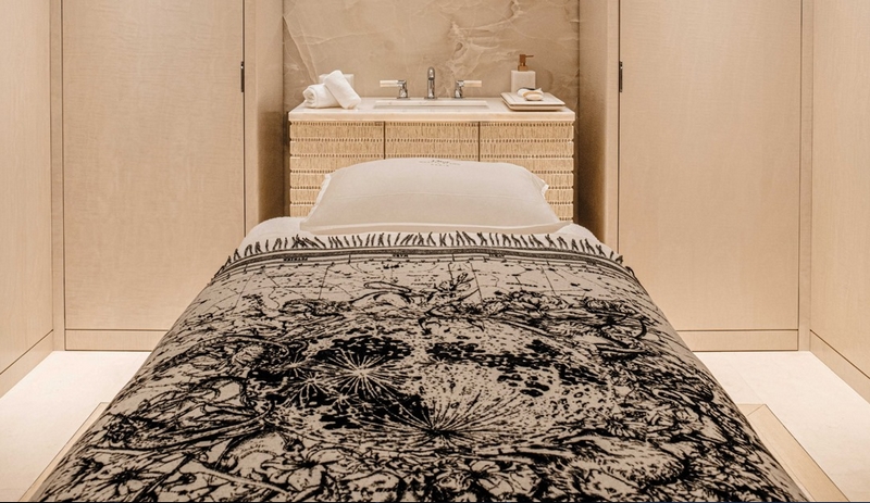 The treatments are performed in six suites, each of which presents a facet of the House of Dior with its stunning décor. With private white onyx bathrooms, each suite is a remarkable place for a magical experience, which gives rise to new emotions. Amongst these six cocoons, the Bonheur Suite features all-new massage beds for a relaxing escape for two, the New Look Suite was designed especially for the six-hand Couture Dream massage, and the Sauvage Suite with its alpha quartz covered massage bed extends an invitation to be at one with Nature…