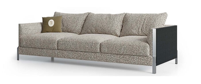A metal detail, which in the particular 45 ° cut rises from the foot and becomes the frame of the armrest, enhances the design of the sofa: a clear and defined sign that outlines the structure in an extremely original and recognizable way.
