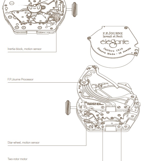 The “élégante” by F.P.Journe’s integrated circuit features very high-performance electronic components, offering 8 to 10 years of autonomy.