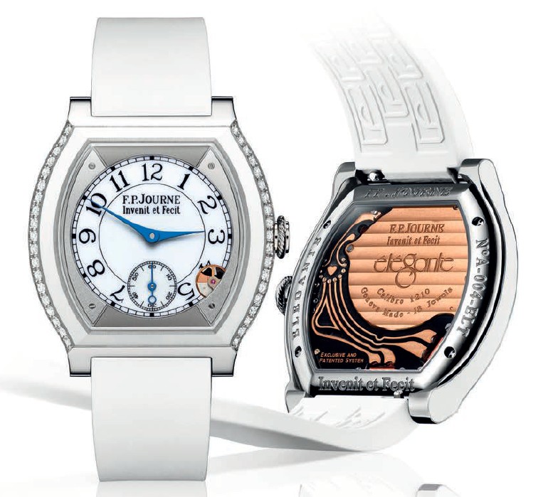 F.P.Journe produces Haute Horology movements visible through a sapphire case back that reveal their beauty, exceptional finishing and noble decoration. The horological expertise demonstrated in F.P.Journe watches and their exclusive assembly process are combined in the new “élégante by F.P.Journe.”