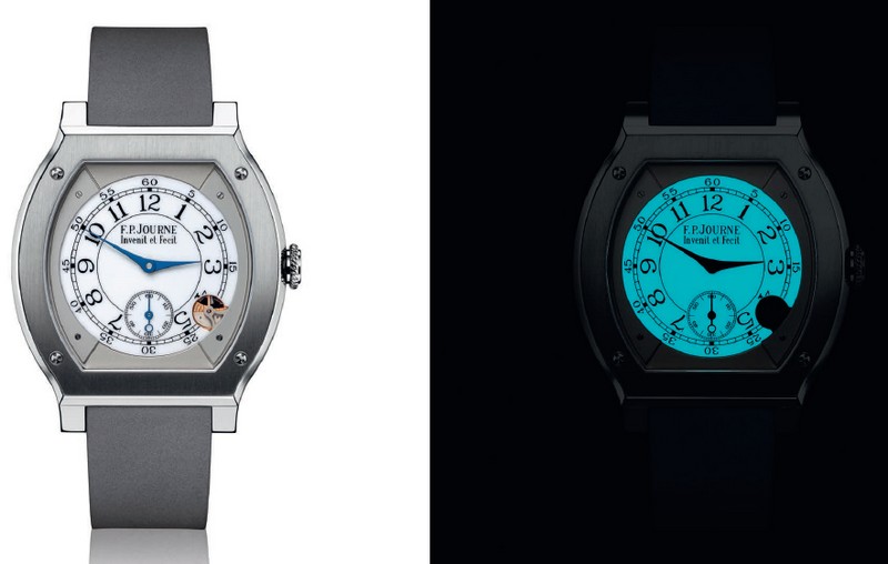 The entirely luminescent dial of the Titanium version offers optimal legibility at night while the hands indicate the time as in a shadow play. During the day, it reminds the gleam of white mother of pearl.