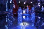 Heavy industrial robots in a landscape of glass: Glass Elephant signature exhibition at stockholm design week.