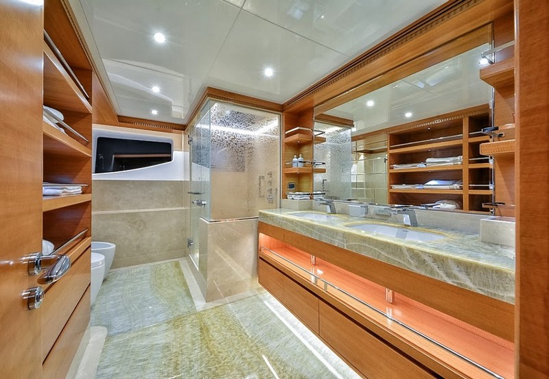 The novelty features onboard the Majesty 135 are abundant, stretching from the use of state-of-the-art technology and environmentally friendly equipment to advanced entertainment systems and ample lounging areas. A 65″ smart full HD LED television in the main saloon, weather-proof ceiling speakers on the sun and upper decks, state rooms equipped with iPad control, and Wi-Fi access throughout the craft are just a few examples of the sophisticated technology onboard the Majesty 135.
