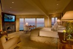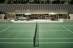 Designed by renowned architect Ed Niles, the iconic modern estate features distinctive triangular geometric shapes which capture the light from the property’s commanding vantage point on the majestic bluffs of Point Dume, offering panoramic views of the Pacific Ocean and coastline along with beach access. Directly across from the lush main grounds, graced by a cascading waterfall, Koi pond and saltwater pool, a guest house, two-bedroom pavilion, kitchen, gym, locker room, championship tennis court and a viewing area where Carson is known to have enjoyed countless matches.
