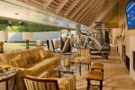 Designed in 1978, the home’s flow emanates from the double triangle shaped living room. Sunlight pierces the 30-foot high glass ceiling and is diffused by the indoor arboretum, illuminating the original stone floors. A sunken indoor copper and glass fireplace anchors the living room which flows into the upper lounge and Asian-inspired bar.