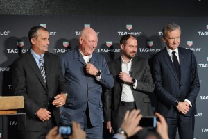 NEW YORK, NY – NOVEMBER 09: Brian Krzanich, Jean-Claude Biver, David Singleton and Bernard Arnault attend the TAG Heuer Connected Watch event on November 9, 2015 in New York City. (Photo by Craig Barritt/Getty Images for Tag Heuer)