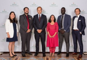 Rolex Awards Ceremony, Smithsonian American Art Museum, Washington D.C., 14 June 2019. Left: 2019 Laureates Miranda Wang, João Campos-Silva,Chief Executive Officer of Rolex S.A., Jean- Frédéric Dufour, 2019 Laureates Krithi Karanth, Brian Gitta and Grégoire Courtine.
