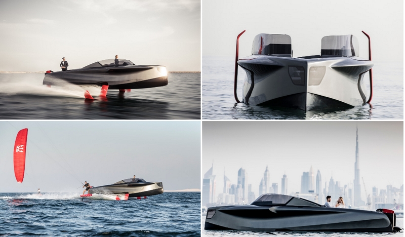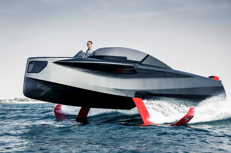 Presented at Dubai Boat Show 2018, the FOILER is a radical evolution from any regular yacht. Its fullycarbon fiber hull is designed not only for a 007 look, but is also promised for easier takeoff, a smoothlanding, and comfortable sailing without using the foils.