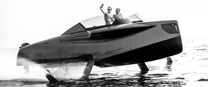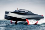 The hydro-foiling system, enabling the boat to fly 1.5m above the water, provides an unmatched experience. Anchored in the water by 4 powerful foils, the FOILER is both extremely stable and immune to wave interference. Driving the Foiler is surprisingly easy and effortless, and the subtle luxury will make any sailing session a relaxing and memorable experience, says Foiler’s builder.