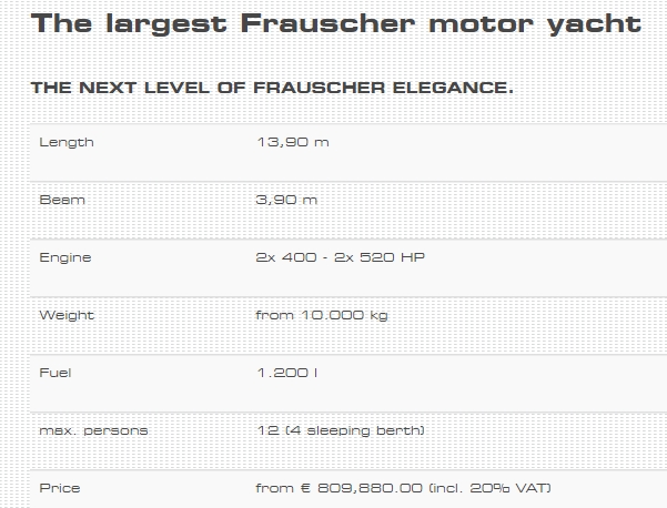 The boat is priced at € 809,880.00 (incl. 20% VAT).