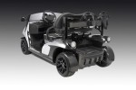 Danish luxury golf cart manufacturer Garia teamed up with Mansory Design to produce the fastest golf cart in the world. The Garia Mansory Prism develops a top speed of 60 km/h (37 mph) and an acceleration of 0-40 km/h (25mph) in less than 2 seconds thanks to new Samsung Lithium Batteries and an upgraded Curtis Controller. The speed is further assisted by a significant weight loss compared to a regular Garia Monaco Roadster of more than 150 kg, making this also the lightest Garia ever made.
