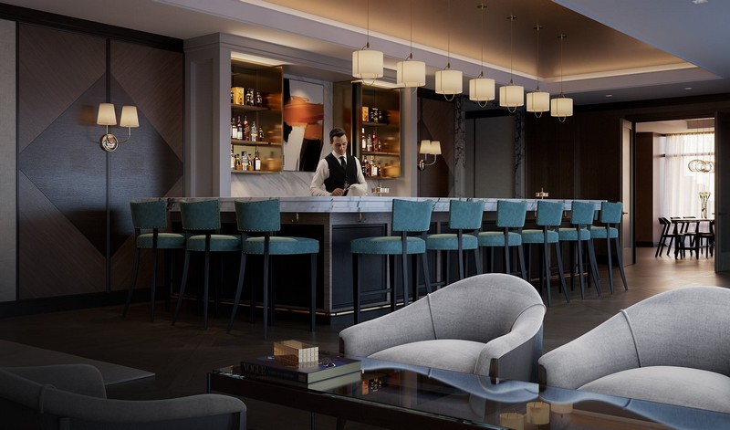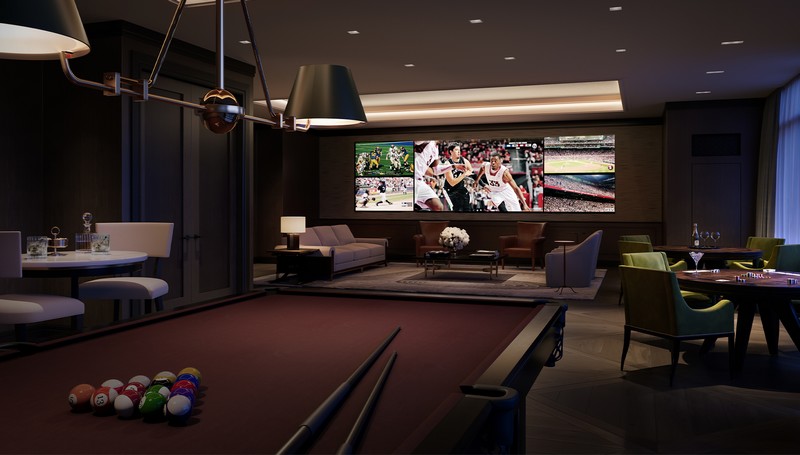 Appointed with the finest finishes and the latest technology, the amenity floor “Club” on the building’s fifth level provides a convivial indoor/outdoor gathering place where residents can socialize with a distinguished community of owners and their guests. Features include a state-of-the-art fitness center designed by celebrity trainer and fitness guru Harley Pasternak, a lounge with a tendered full bar, private dining, and a landscaped outdoor terrace with welcoming firepits. Staffed by a full-time dedicated attendant, the Club will also include a meticulously appointed game room that will feature a custom-designed media wall.