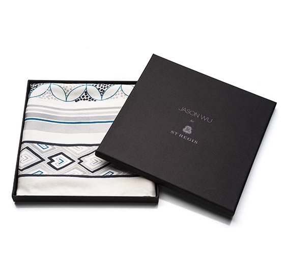 The Grand Tourista Scarf by Jason Wu for St. Regis Hotels & Resorts is 100 percent silk twill with hand-rolled edges and features intricate geometric patterns in vibrant hues of blue, evocative of the ceramic tiles that cement the city’s design and architecture; beige, a softer neutral tone calling to mind the natural spices that fill Istanbul’s many bazaars; and grey, Wu’s signature color. Sophisticated, timeless and informed by the brand’s rich heritage, the collection of scarves captures the energy of one of the oldest cities in the world with a modern design.