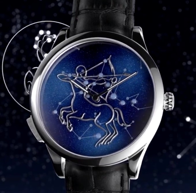 Van Cleef & Arpels’ vision of the cosmos continued at SIHH with Midnight Zodiac Lumineux Poetic Complications watches. Precious constellations. With its invitation to live in harmony with the rhythm of the cosmos, Poetic Astronomy recreates the sparkle of the stars in a new series of twelve Midnight Zodiac Lumineux models, each equipped with an exclusive lighton- demand module. First developed in 2016 for the Midnight Nuit Lumineuse watch, this self-winding mechanical movement now illuminates the twelve signs of the Western Zodiac.
