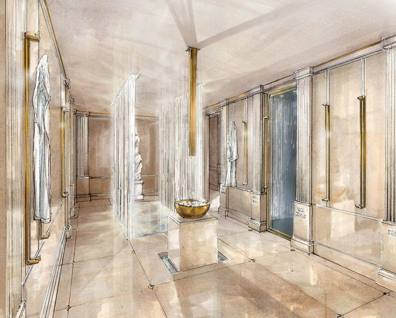 Guests will be greeted in a traditional lobby, featuring a restaurant with semi-private dining area, flanked by a manicure and pedicure suite and expansive fitness area. The club will include thermal suites, central Spa Treatment Lounges and a series of treatment rooms, as well as a hydropool.