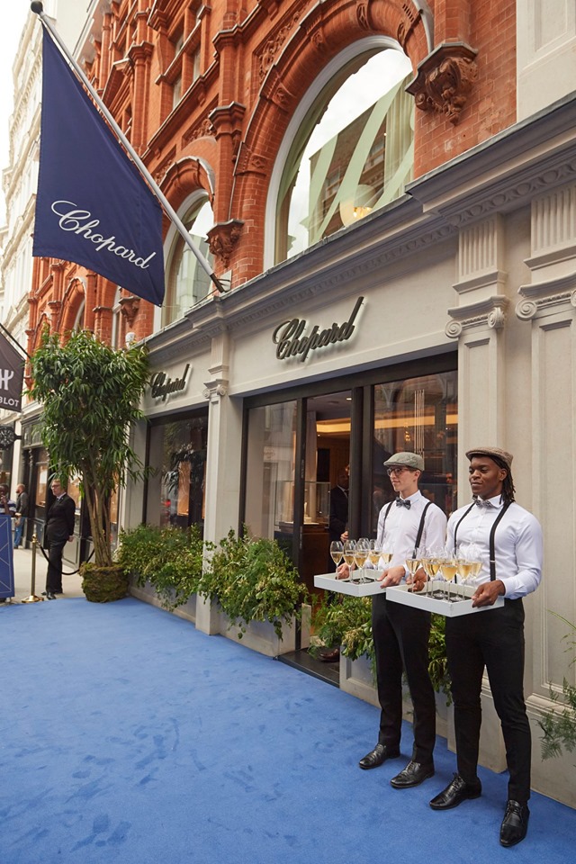 Discover the world’s most prestigious gatherings & exhibitionsRefurbished using local environment-friendly materials, this new boutique is another step forward in Chopard’s Journey to Sustainable Luxury and its inaugural evening met the same high standards. The blue and gold carpet rolled out on the street to welcome guests – driven in by the all-electric London taxis commissioned by Chopard – was produced by Aquafil from ENONYL, a fibre made entirely from recycled plastic materials such as used fishing nets.
