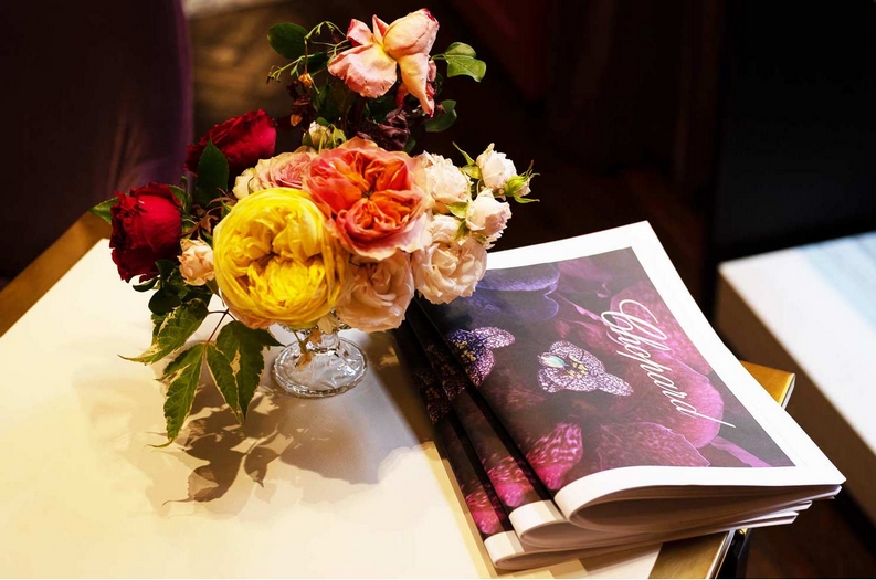The Chopard boutique facade and all along the arrival route, florist artist Philippa Craddock created a decoration composed of locally supplied flowers that reflected the Maison’s links with nature.