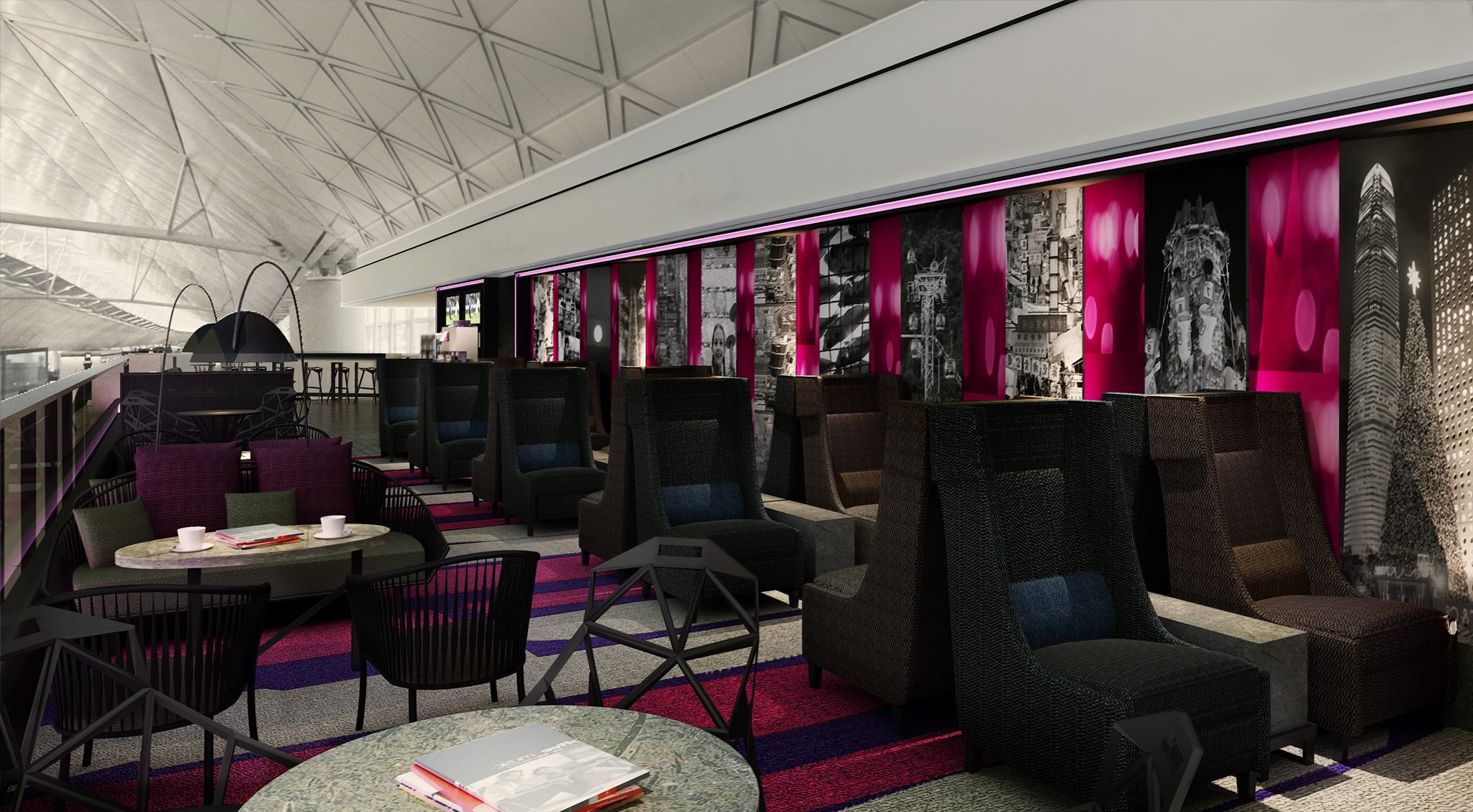 The lounge, designed by Kinney Chan of Kinney Chan & Associates, is divided into several zones to provide travellers with multiple experiences and choices while at the lounge. Beyond the well-lit reception area, guests enter the main lounge and are greeted by a variety of seating configurations and a sleek, sophisticated design.