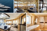 “She combines sophisticated interiors by the renowned Terence Disdale, exceptional performance, and pedigree craftsmanship. Her sweeping exterior decks include a sun deck Jacuzzi and a helicopter landing pad while inside she offers spacious accommodation for 10 guests in 5 cabins”