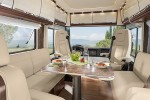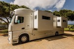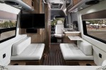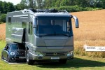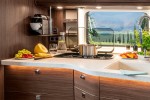 The 500 HP vehicle is equipped with three air-conditioning and five heating systems as well as 1,700 Ah battery capacity and 1,830 kW solar modules. These batteries also supply the induction hob, the oven and the dishwasher with electricity. The 5kW gen set renders outside power supply superfluous even in winter operation. Those still not happy with the room available inside can expand it significantly with an optional slide out or wall-out element.