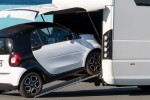 The patented central garage of Volkner Mobil Performance S’ motorhomes provides the opportunity to take your favorite car on vacation. Whether 911, BMW i8, Mercedes C-Class Cabriolet, Ferrari, Mini Cooper, or whatever, the “dinghy” is simply driven and pulled in hydraulically.
