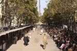 The Marché Saxe-Breteuil in Paris morphed into “Stella’s Sustainable Market” for the Stella McCartney Spring-Summer 2024 show. The collection is a study in family, freedom and fluidity, exploring the creative director’s personal history, from her parents’ shared wardrobes to their relationship with the environment.