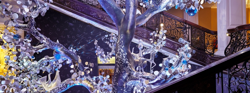 Hotel Café Royal London x Diptyque Christmas Tree sparkles in shades of silver, gold and white.