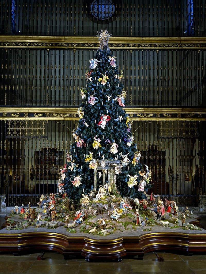 Each year, Met’s Gallery 305 displays a 20-foot blue spruce with a majestic Nativity scene at its base, enshrined in an abundant array of lifelike figures with silk-robed angels hovering above. The installation is set in front of the eighteenth-century Spanish choir screen from the Cathedral of Valladolid in the Museum’s Medieval Sculpture Hall. Recorded Christmas music adds to the enjoyment of the holiday display.