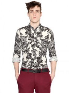 just cavalli FLOWER PRINTED BRUSHED COTTON SHIRT