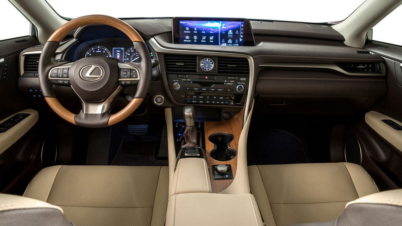 The standard seven-seat version uses a 40/20/40 split bench-type second row seat. The RX L cabin is designed with impeccable details, including form-fitting seats, and the available richly finished wood trim that curves gently up from the center console toward the glove box.